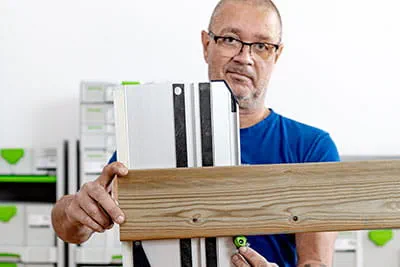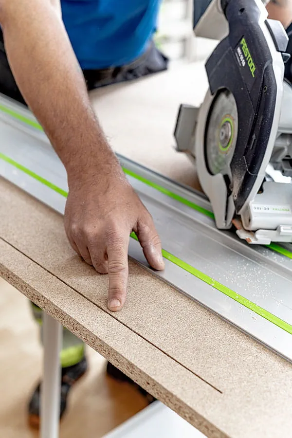 – Snickare och byggare har ju redan en cirkelsåg och en kap-/gersåg. Och utöver det har många redan en sänksåg, i de flesta fall vår TS 55, som år efter år är marknadens mest sålda sänksåg. Så hur förklarar man att de skulle kunna bli ännu mer effektiva med en batteridriven 18 V cirkelsåg som klickas fast på en linjal också?