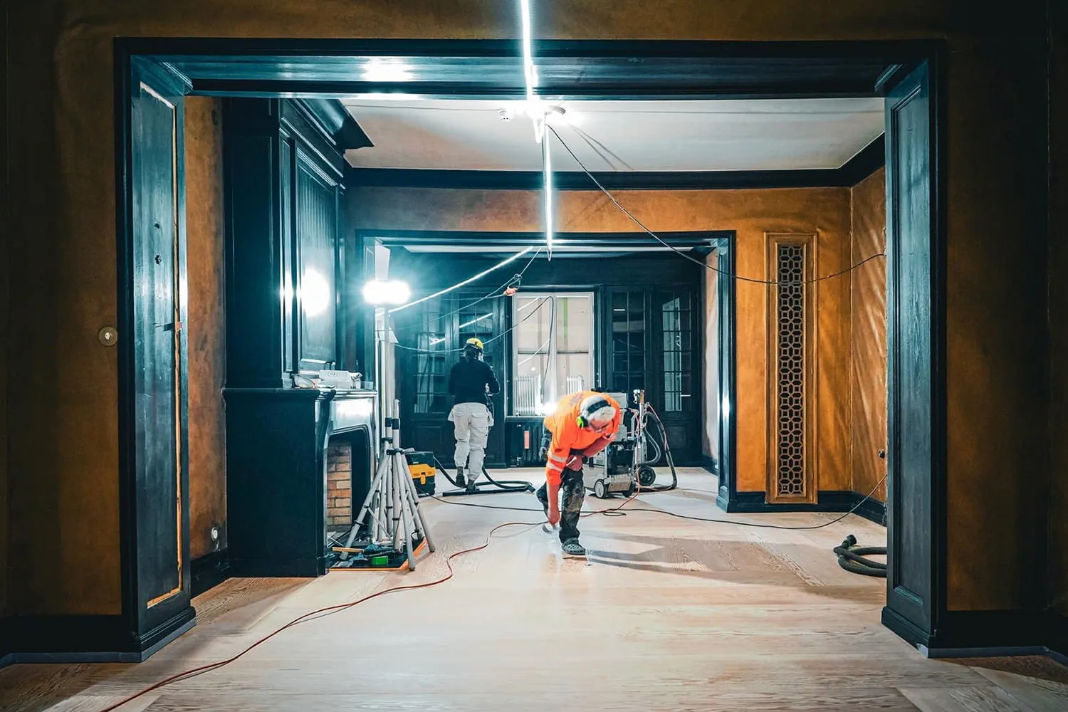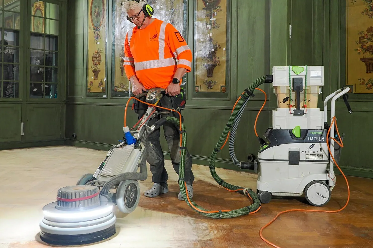 Kombinationen av effektivt dammutsug och Luftrenare gjorde det möjligt att utföra det krävande renoveringsarbetet på ett värdefullt sätt - på ett sätt som uppfyller de högsta kraven i arbetslivet, både förr och nu.Förädling av en värdefull miljö - oljning med slipmaskinen ETSC 2