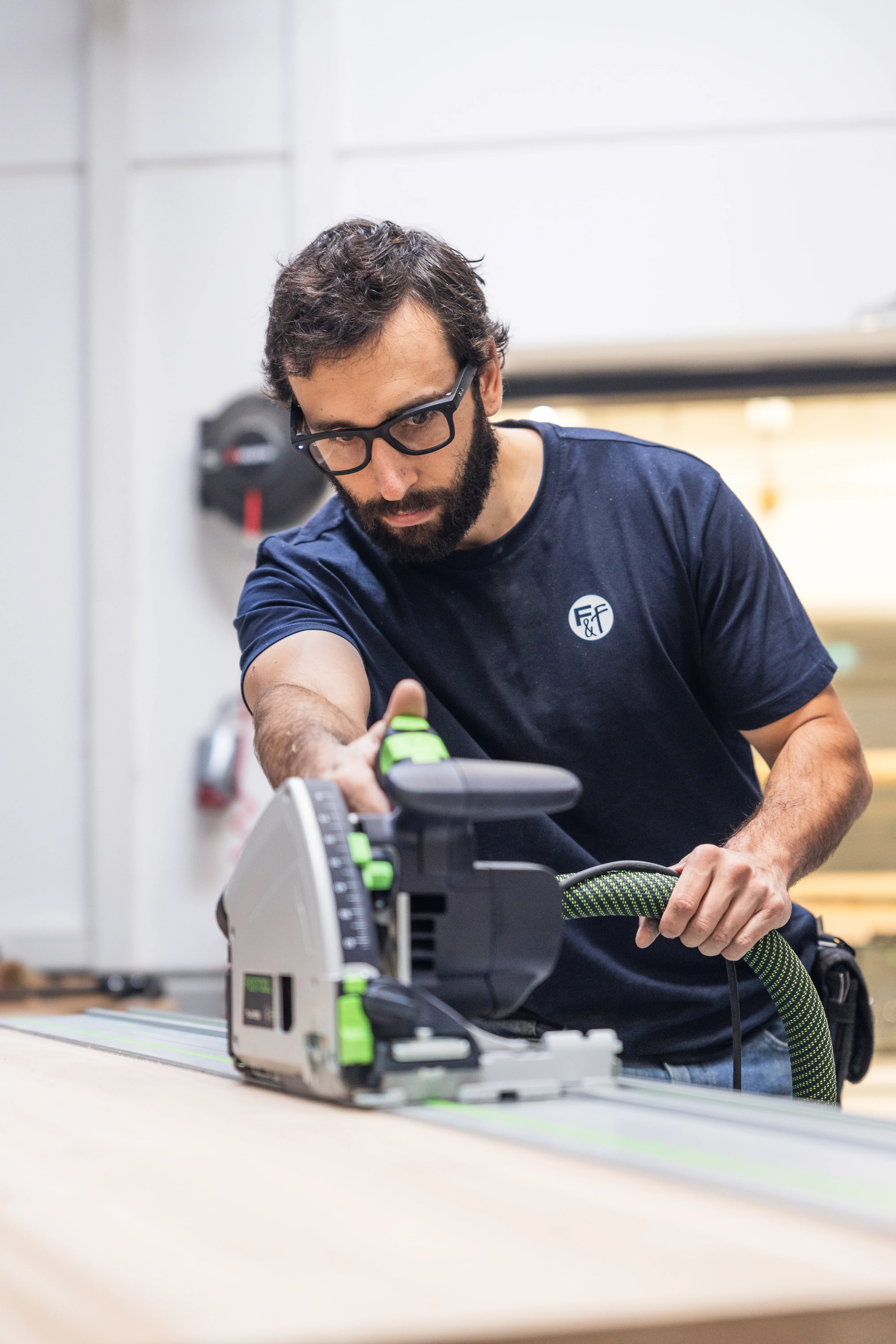 När sju kreativa och begåvade människor från olika länder möts - plus högkvalitativa Festool-verktyg och mycket passion - skapas något mycket speciellt. Detta var också fallet vid vårt första Festool & Friends Build-Off-evenemang, som ägde rum i Reutlingen i juli 2025. Uppgiften var att designa och bygga en fullt fungerande arbetsbänk för barn inom tre dagar. Deltagarna visste inte vad de kunde förvänta sig i förväg - och var desto mer motiverade att släppa loss kreativt och med sin hantverksskicklighet.