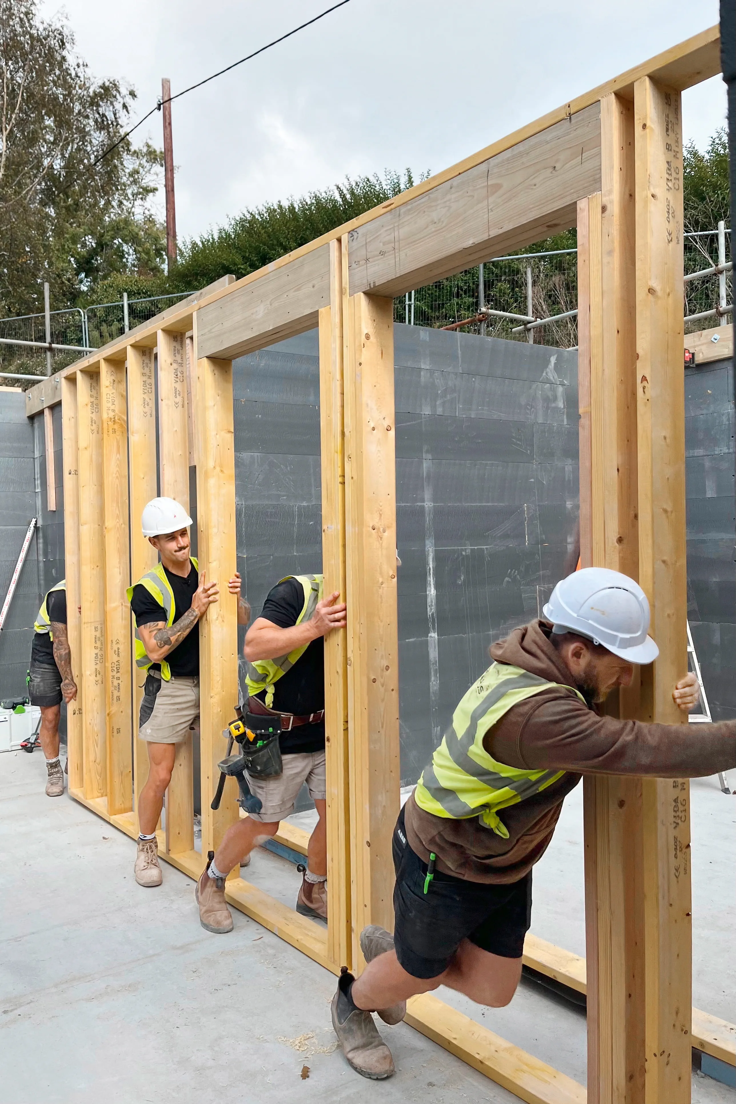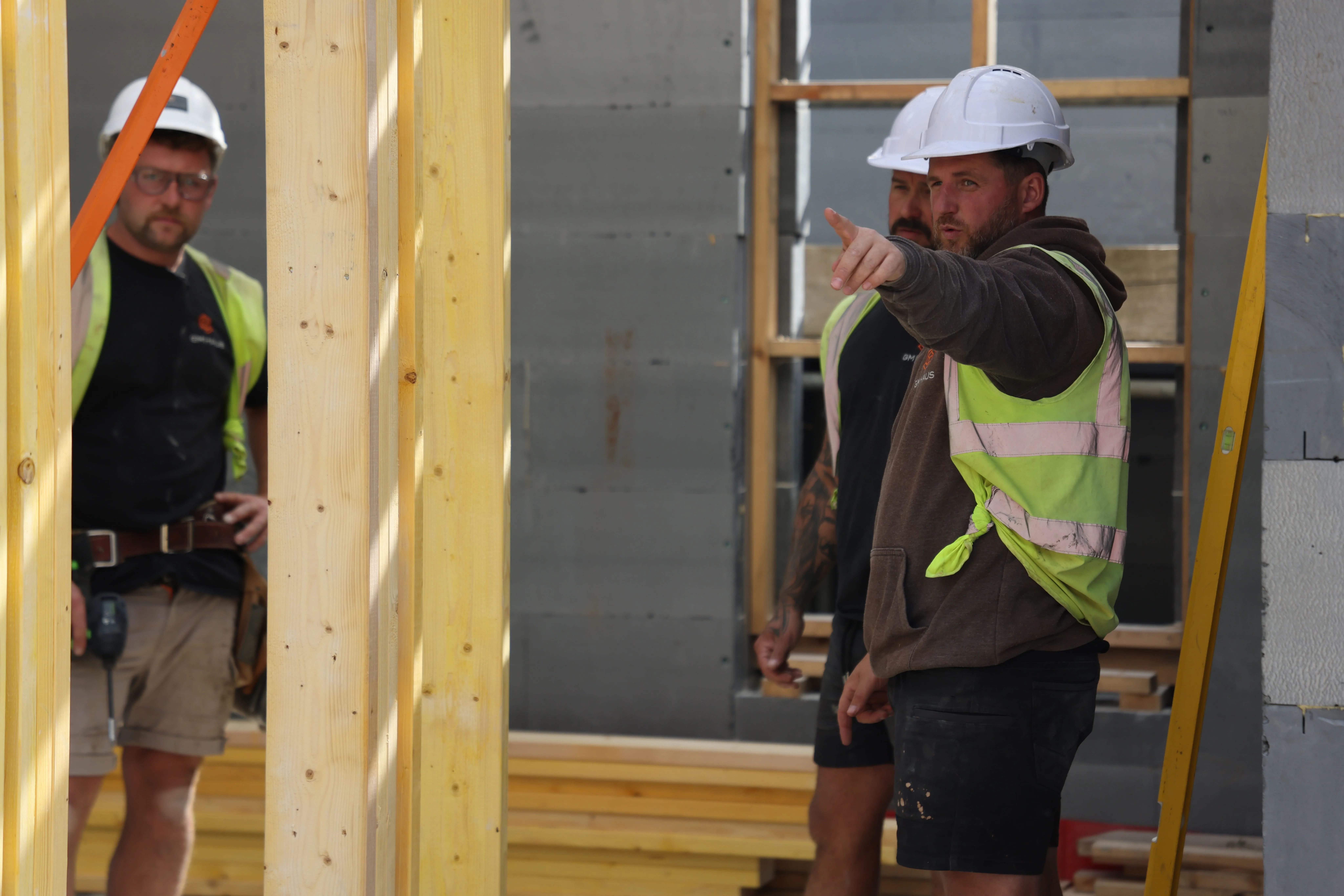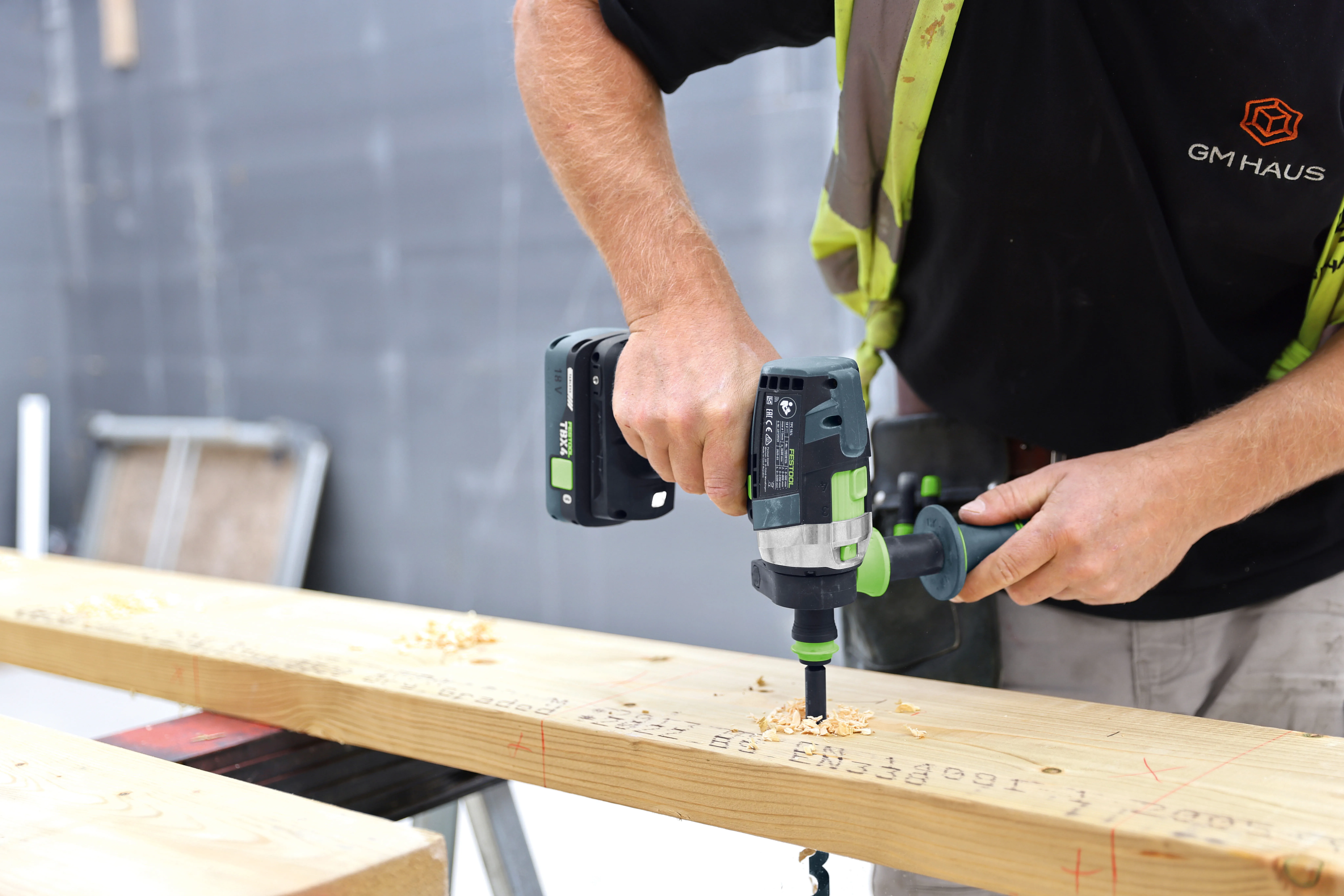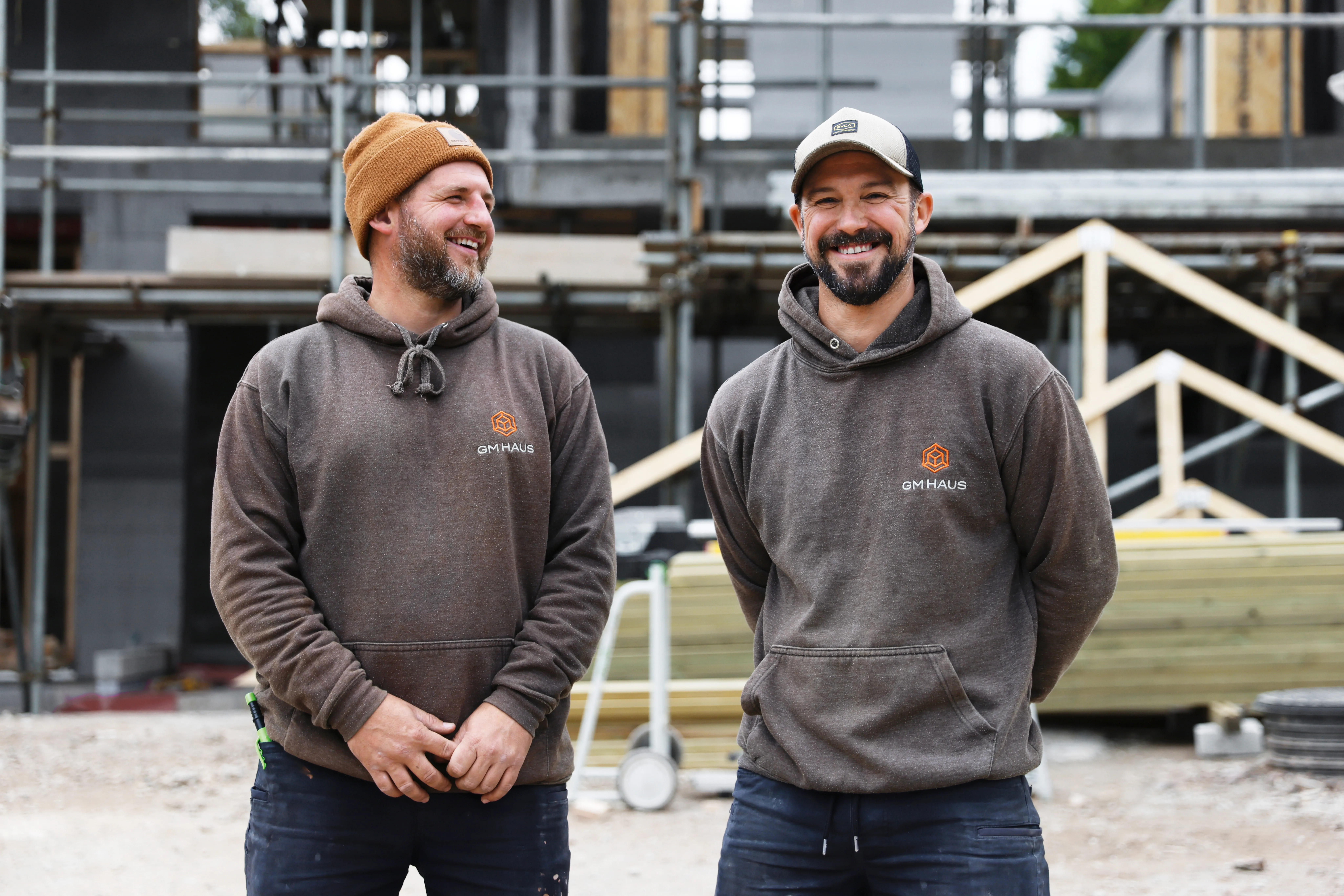 Projektet: ett tvåvånings familjehem - modernt, energieffektivt och med mycket mycket trä. Sedan februari 2025 har Sam och Nathan och deras team varit på plats nästan varje dag. Företaget GM Haus, som de grundade för fem år sedan, som "generalbyggare" tar faktiskt över hela byggprocessen hela byggprocessen med alla yrkeskategorier: från rivning av det gamla huset strukturellt arbete, uppförande av bärande bärande timmerkonstruktioner till färdigställande av inredning. Allt var krävande och utmanande. Men det är precis det som älskar och vad de ville ha från början.
