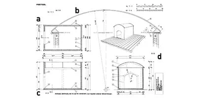 Markera radiens mittpunkt för takets och dörrens rundning på gavelns ytterbeklädnad. Gör en enkel cirkel av en plywoodbräda (borra ett hål för blyertspennan i ena änden, mät radien från pennans spets bakåt och borra ett hål D = 3,5). Skruva fast cirkeln på den markerade mittpunkten genom detta hål.