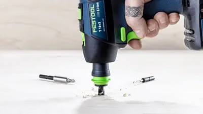 En 18 V-skruvdragare som ger dig enkelhet, snabbhet och styrka är förmodligen alltid rätt. Med T 18 och den lika kompakta som starka snabbchucken CENTROTEC WH-CE byts olika bitshållare, bits och borr med ett enkelt klick istället för med borrchuckens långsamma upp-/inspänning.