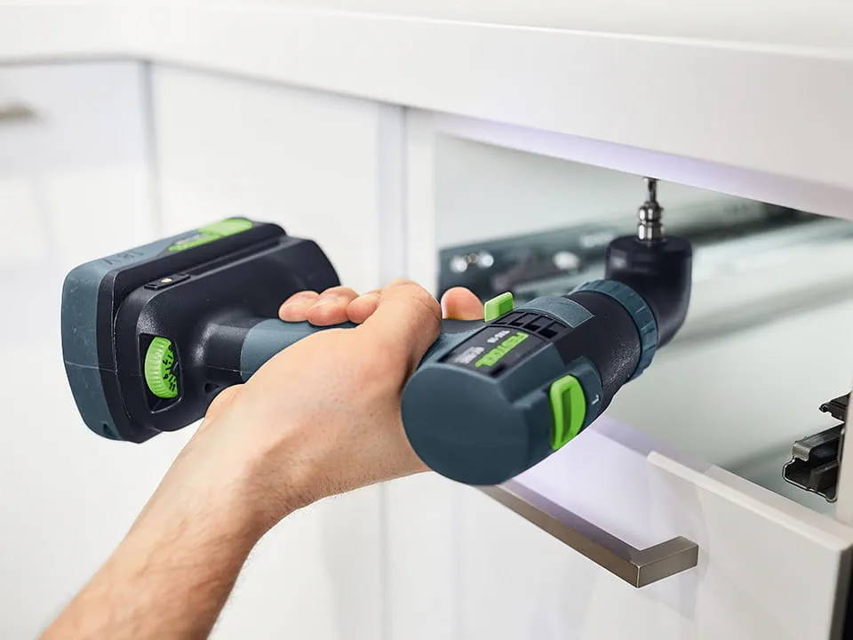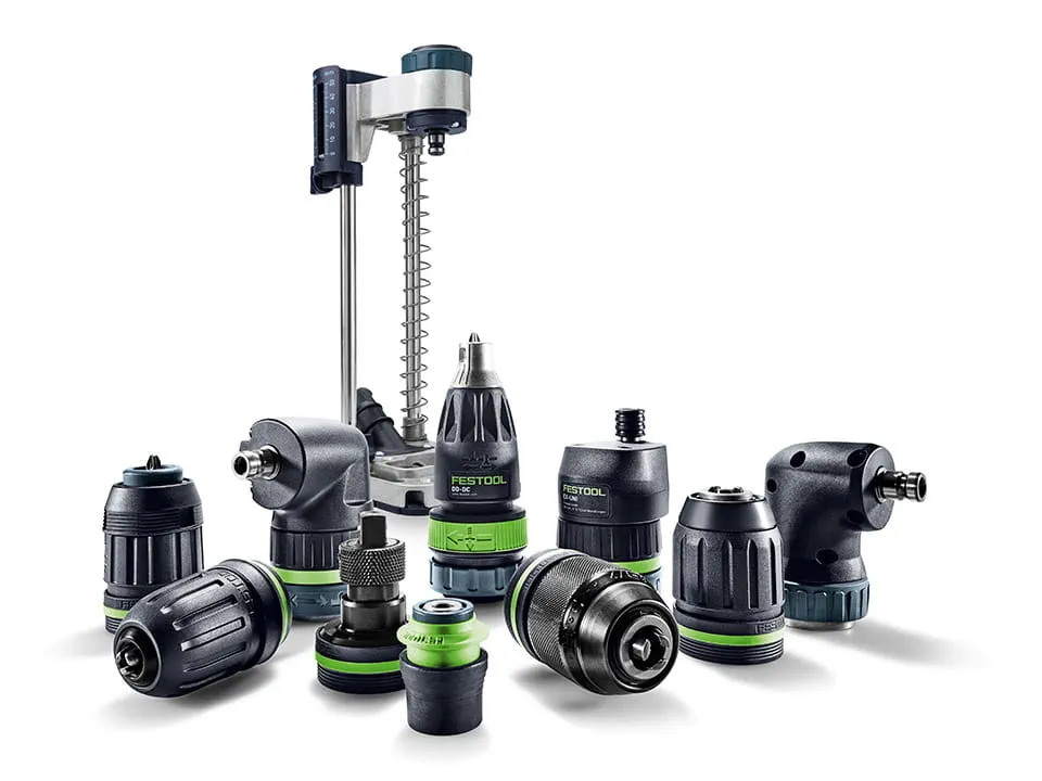 Festools batteridrivna skruvdragare passar perfekt in i vårt system. Med tillbehör som snabbväxlingssystem, vinkel- och excenterchuck, djupanslag, batterier, laddare, bits och borr kan du arbeta snabbare och mer effektivt i alla typer av projekt.
